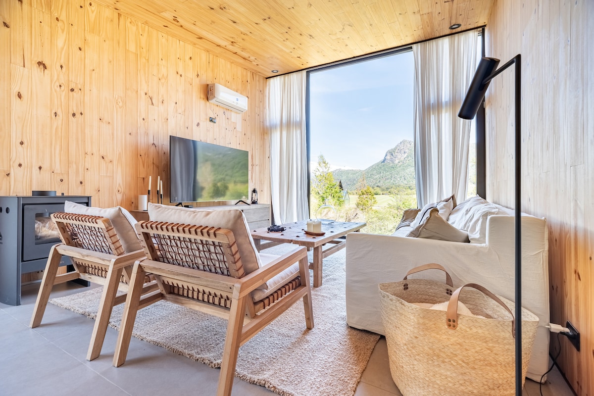 This stunning 969 sq ft luxury cabin is located along the Circuito Chico, right on the shores of Lake Moreno, in a truly unique natural setting surrounded by over a hectare and a half of pristine Patagonian forest. With direct lake access, a private garden, sauna, Hiroki (Japanese hot tub), and top-tier construction, the cabin is designed to offer the perfect blend of comfort, tranquility, and refined design in harmony with nature.
