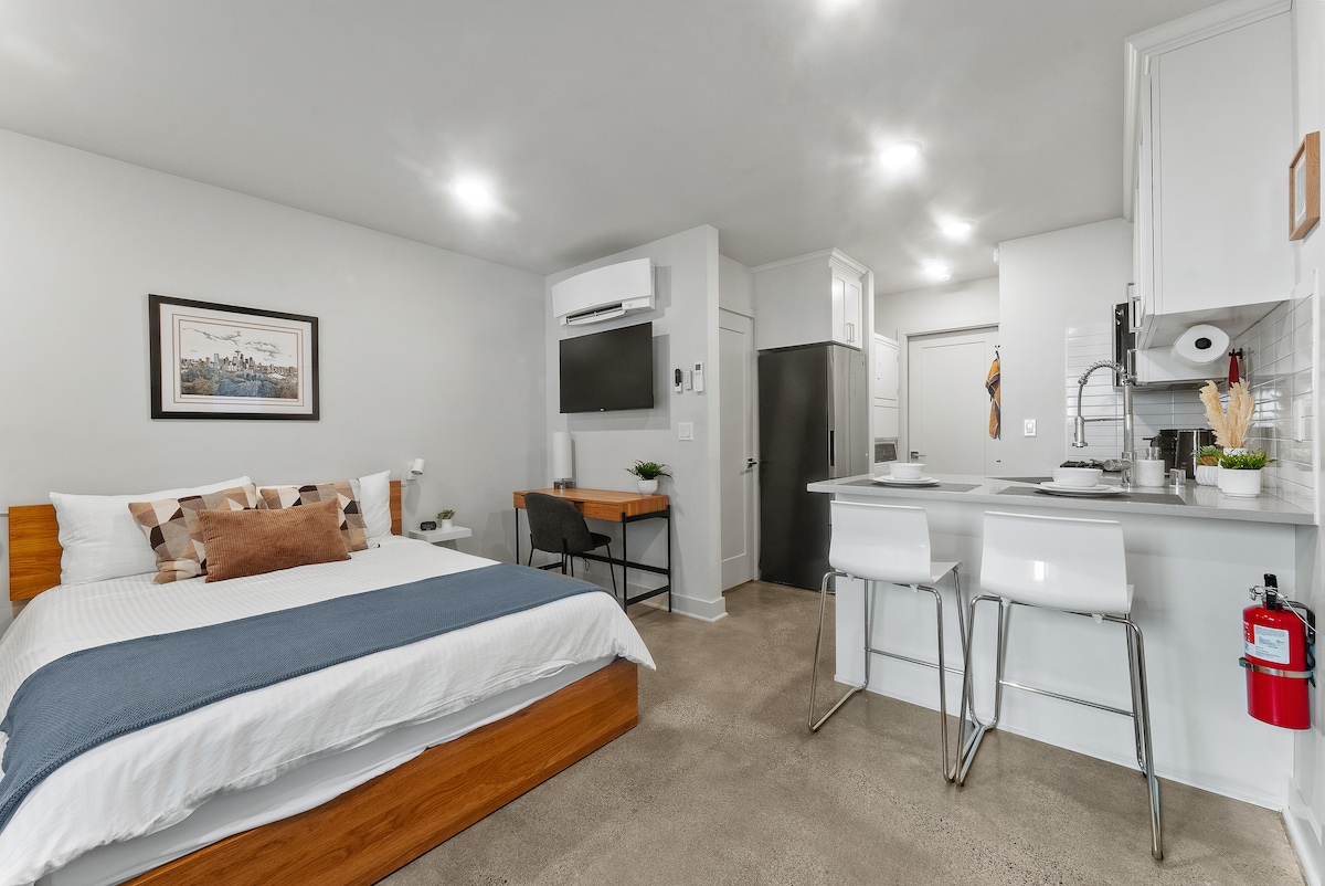 平均评分 5 分(满分 5 分),共 11 条评价全新现代单间公寓•空调、全功能厨房、洗衣机/烘干机、停车位
