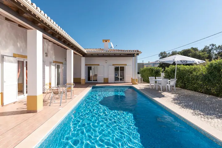 Tucked away in the exclusive and peaceful Montinhos da Luz neighborhood, Vila Arpeggio is a spacious 3-bedroom private villa perfect for those who want a quiet retreat close to the beach. This beautifully maintained home features a large master bedroom , 3 bathrooms, a private backyard with a pool,a cozy fireplace,and brand-new air conditioning in every room, ensuring a comfortable stay year-round. Ideal for families, couples, small groups & remote workers—just 5 min from Praia da Luz & Lagos