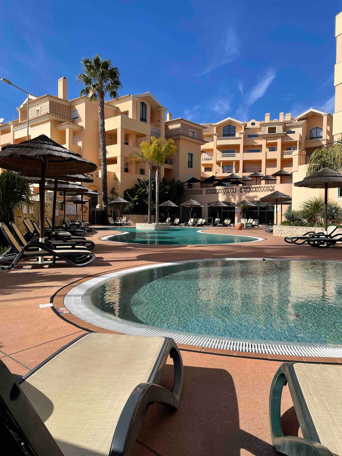 1 bedroom apartment in the Herdade dos Salgados 5 star resort, ideal for couples with up to 1 children looking for comfortable and relaxed holidays close to the nature, beach and golf. The apartment is on the second floor, has a large balcony (17 m2), a huge living room (44 m2), excellent view over the 7 swimming pools and it is in a resort with extensive green areas (750 palm trees and 2,500 olive trees). The resort has direct connections to Salgados Golf and to the beach.