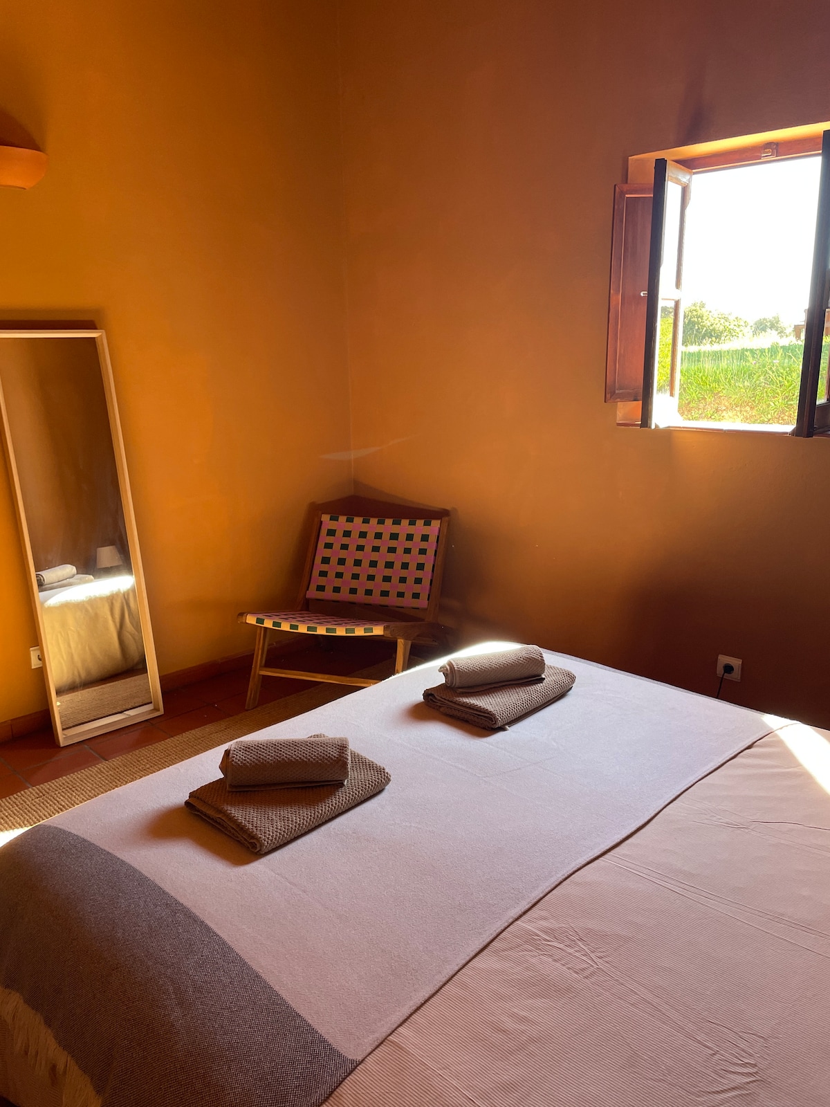 The Chapel Room is a characteristic room on a unique rural estate in the Algarvian countryside. The estate breaths authenticity and offers a pool and a beautiful sauna. The room features a double bed, a kitchenette with fridge and cookerplate and a spacious bathroom in Moorish style with bath and shower. The entrance door gives onto a gallery that leads to the inner garden.