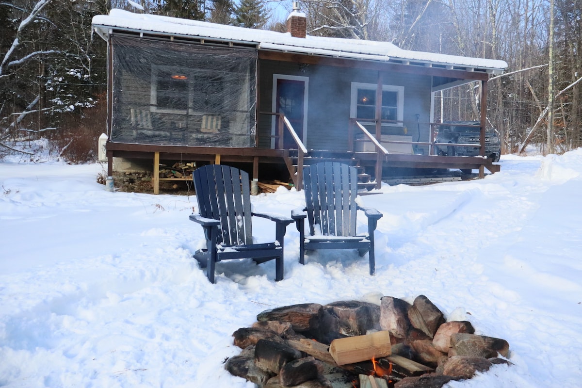 Secluded rustic charm, circa 1900 cabin in the woods getaway, spend time in nature surrounded by forest, brook, wildlife, hiking trails, fall foliage, mountain biking skiing. Sauna, Cold Plunge, Outdoor Shower & Hot Bath. Unwind from the outside world and reconnect with your self or your loved ones and the natural world around you. Loft with real beds, well stocked kitchen, grill, outhouse, Glamping! Close to Woodstock, VT and South Royalton, 30 mins to Killington VT or Hanover NH