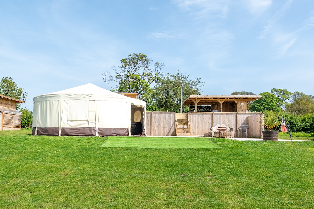 A stunning luxury Yurt, complete with an elevated decking area, private hot tub and a flickering fire pit with its own private toilet and shower. Lose yourself in the sound of birdsong and bubbles, as this modern take on a traditional Yurt comes equipped with everything you need to embody both nature and comfort. Sit back, relax and star-gaze from the sudsy seclusion of your heated hot tub whilst soaking in the views of a flickering fire pit and sumptuous natural surroundings.