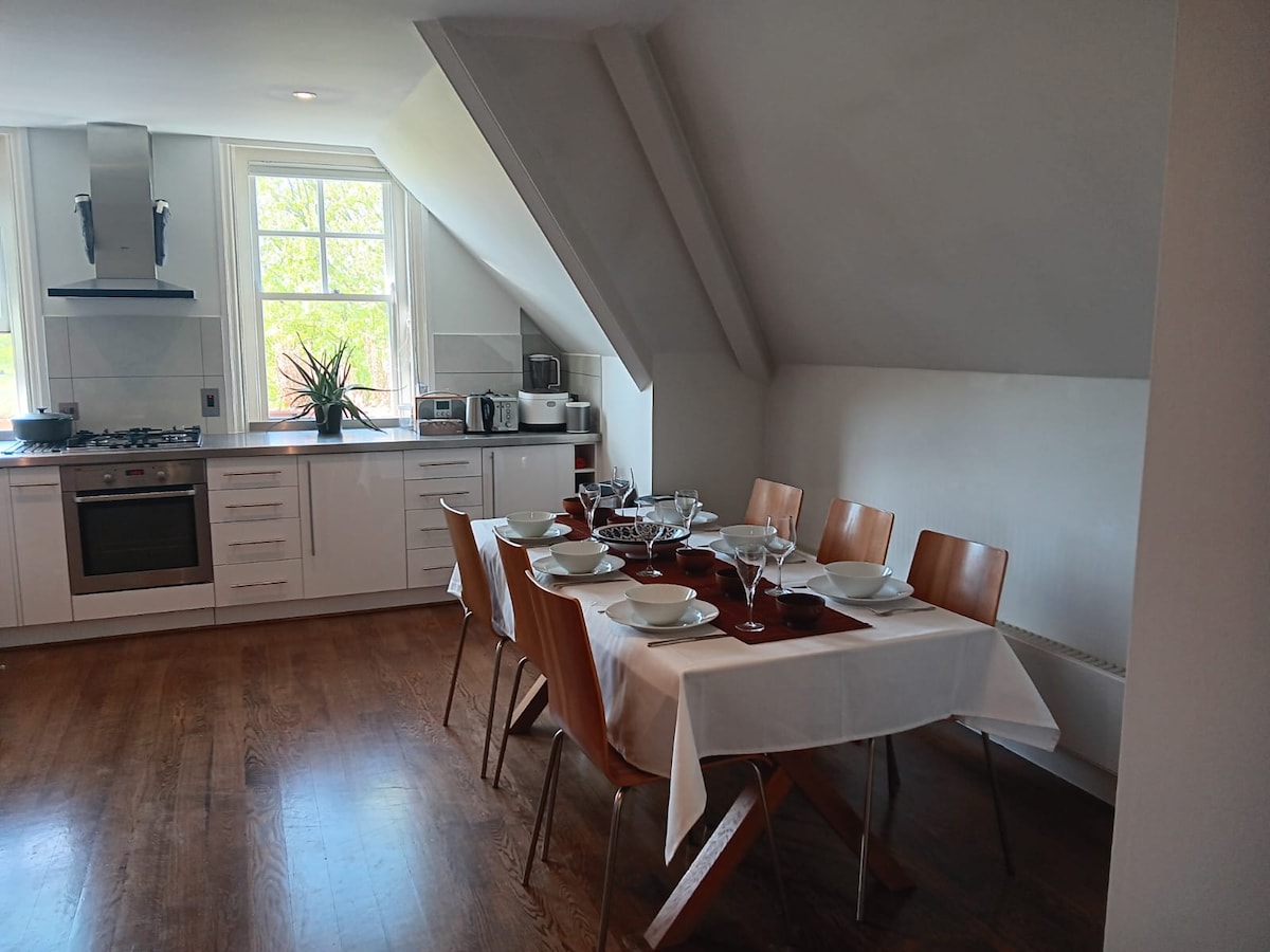 A large (110sqm) top-floor apartment surrounded by trees and open space, this is the perfect London base to explore the City, attend sporting events such as Wimbledon and the Boat Race, or simply visit family and friends. Abundant parks and trails will keep runners and walkers happy, especially along the river and in Richmond Park. The open plan living space provides sunset views, fast wifi and dedicated desk and monitor will allow you to keep in touch with the office.