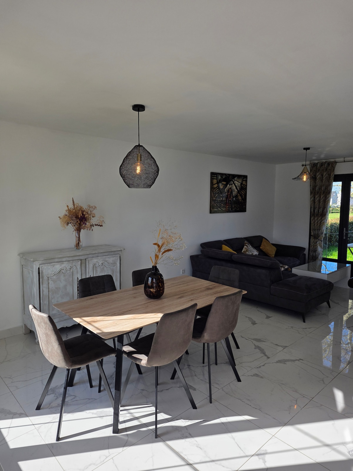 Maison contemporaine neuve de 160 m2 terminée en mars 2021. Situation exceptionnelle au cœur de la charmante station balnéaire de Barneville Carteret sur la corniche. Vue à couper le souffle sur la mer face à l'ile de Jersey dont vous pourrez profiter depuis la grande terrasse exposée plein sud de 35 m2. Superbe plage de sable fin à 2 minutes à pied en contrebas de la maison (plage de la "potinière ") Du 28 juin au 30 août 2025 : 7 nuits minimum + arrivée/départ exclusivement le samedi