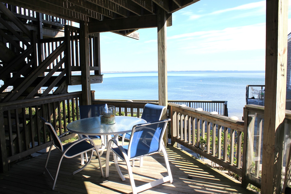 2 Bedroom condo with views of the beach, ocean and marina. This wonderful condo is part of a beachfront/oceanfront complex, with steps to your own private beach in Chatham! We are within a mile of beautiful downtown Chatham and within a short walk to Chatham’s famous lighthouse beach and Monomoy Wildlife refuge. Whether by land or sea, there's something for everyone. This is a great place to make memories.