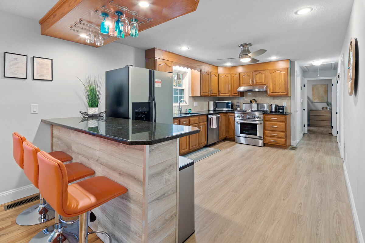 Bring the whole family to this great place with lots of room for fun. This gorgeous home has 5 bedrooms with 2 baths. Short walk 0.4 miles to Glendon Beach. This house has a new kitchen, stainless steel appliances, and hardwood floors. It's an open floor plan with an oversized family room with a 50" smart flatscreen TV that opens to a private covered flagstone patio with a gas grill and outdoor picnic table. The yard is huge and has a firepit.