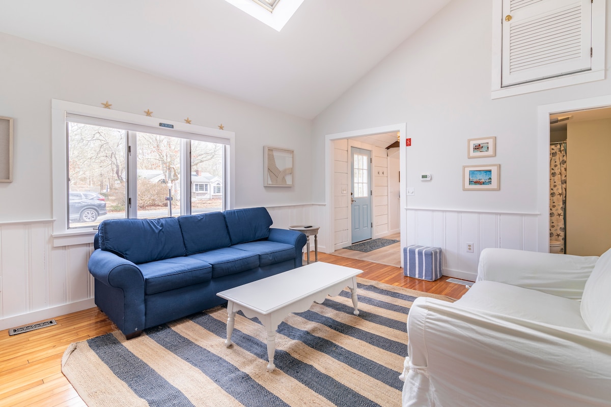 This very clean and spacious 1 bedroom cottage has AC, is within walking distance to two public Nantucket Sound Beaches and is centrally located on Cape Cod. The vaulted ceilings and ample array of windows gives off natural light and a sense of space. FYI The cottage's name, The Strandloper, the Beachwalker, is a member of an extinct tribe of Khoikhoi Bushmen who lived on seafood gathered along the beaches of Southern Africa. Walking beaches is just as special today as it was a millennium ago.