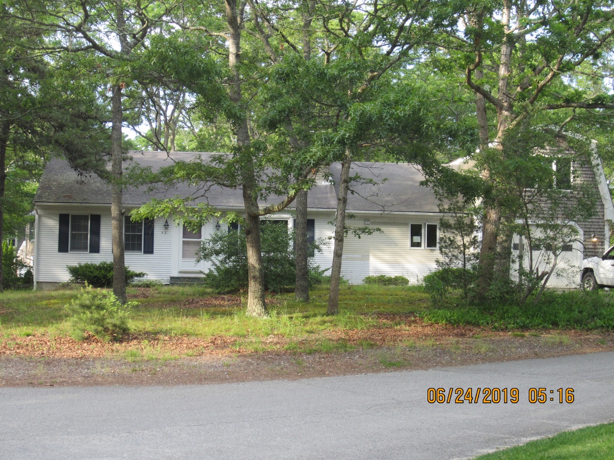 Come enjoy the cape from a private, dead-end road off Rt 28. 10-15 mins to beaches, 15 to Hyannis or Falmouth, 5 to Mashpee commons. Or, relax in a hammock in the privacy of the fully-fenced in wooded yard or by the fire pit. Family and dog friendly! 2 desks for WFH in separate rooms. -Heat/AC in every room -High speed Wifi : 200+ Mbps in all areas inside, 30+ Mbps from hammock -Smart speakers for in/outdoor use -Fire TV w/ Netflix, Disney+, etc -Working fireplace (in Winter)