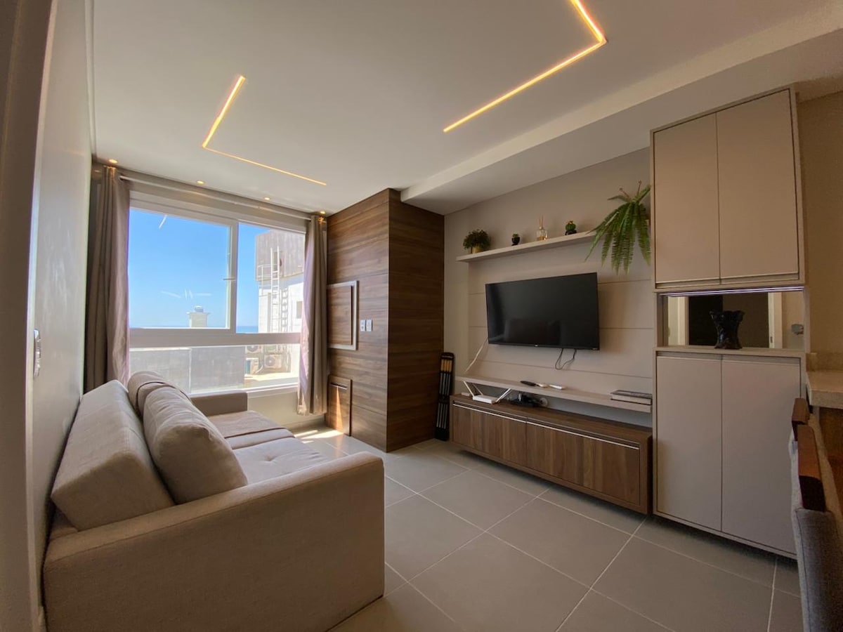 Enjoy the Tramandaí coastline in an excellent beachfront apartment, located on the 12th floor, well-ventilated, and with a stunning view of the beach. The space has everything you need for a peaceful stay: internet, beach chairs, cable TV, appliances, bed linens, and towels. Located just steps away from a wide variety of beachfront bars and restaurants, and about 700m from the city center.