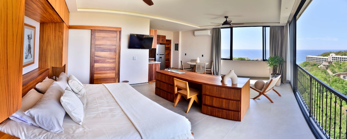 Este lugar único tiene su propio estilo. Hermoso Loft con una de las mejores vistas del Océano Pacífico Mexicano. Despierta con los primeros rayos del sol y disfruta de un espectáculo diferente con cada amanecer! El complejo cuenta con amenidades como: -Alberca con còmodos camastros. -Area de bar en la zona de alberca. -Gimnasio con vista a las montañas. -Rooftop con vista al oceano y a las montañas. -Lobby. -Seguridad. Hard not to stay in the moment here!