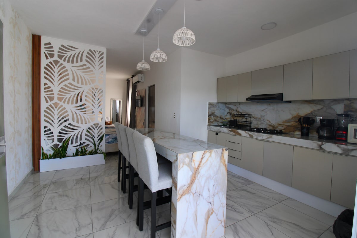 Our Penthouse is designed with the luxury and comfort you deserve! 📌with a combination of modern luxury and tropical relaxation. 📌Private terrace with jacuzzi, perfect for enjoying starry nights or sunbathing. 📌We are close to everything, just one street away from the main avenues 📌Our space is ideal for business-traveling couples or small families looking for comfort, style, and a memorable experience.