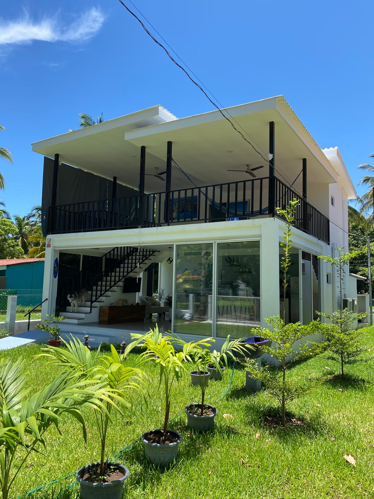 Casa de playa frente al mar es el lugar perfecto para una estadia en familia o amigos! Todas las habitaciones poseen aire acondicionado, camas comodas y un espacio para guardar sus cosas, sin olvidar que tendra acceso a internet. El terreno tiene bastante espacio verde, lo que permite tener tranquilidad a varios con o sin animales y un parqueo grande. El pueblo de la barra esta a 5 min en carro donde encontraran restaurantes y tiendas.
