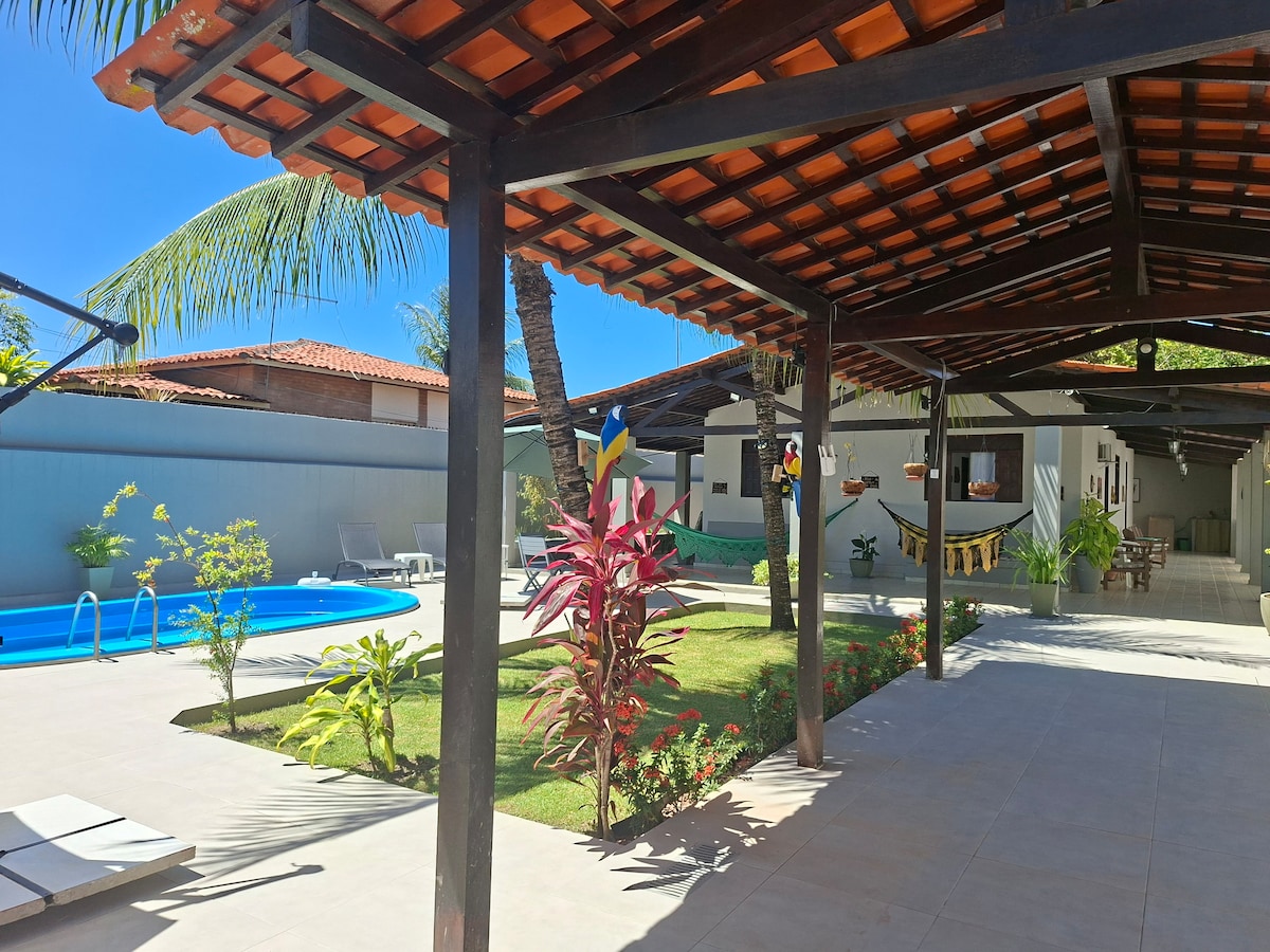 Relaxe com toda a família ou amigos nesta acomodação tranquila na praia de Tabuba/Alagoas. Casa com piscina, Jardim, churrasqueira, reformada, lindamente decorada a 200 metros da praia, com 3 dormitórios sendo 1 suite com cama King, mais 2 dormitórios com cama Queen, cozinha integrada com a sala, mais 1 cozinha externa. Ar condicionado nós três quartos, boa ventilação, banheiro social amplo , 2 banheiros completos externos, chuveirão. Obs: Temos Colchão casal e solteiro caso seja necessário.