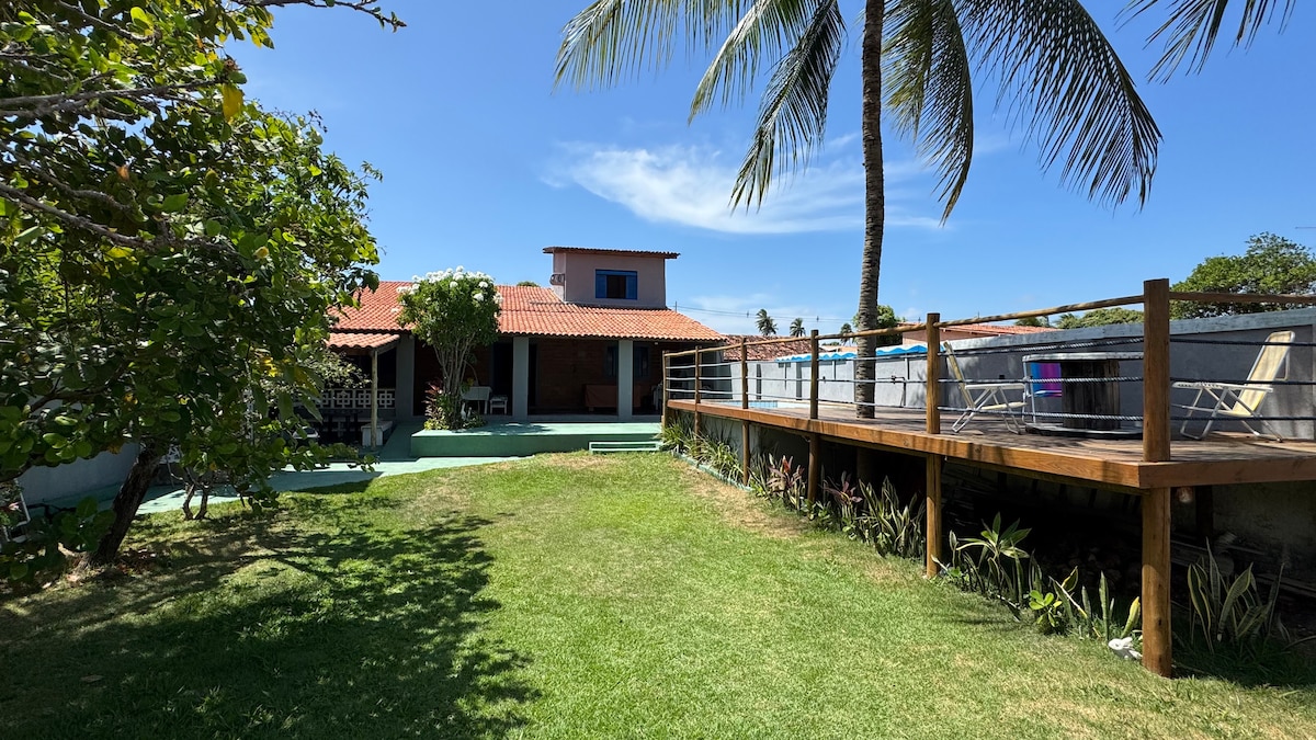 Belíssima casa a beira-mar próxima ao rio e as piscinas naturais. A casa fica localizada em uma região tranquila da praia de Tabuba, Barra de S Antônio. O imóvel conta com: - 5 quartos, sendo um suíte - 3 banheiros sociais - Cozinha com utensílios domésticos - sala de estar confortável - jardim espaçoso - parquinho para as crianças A casa conta com 5 camas de casal e 4 colchões de solteiro. Obs. A roupa de cama é inclusa, mas não fornecemos as toalhas de banho.