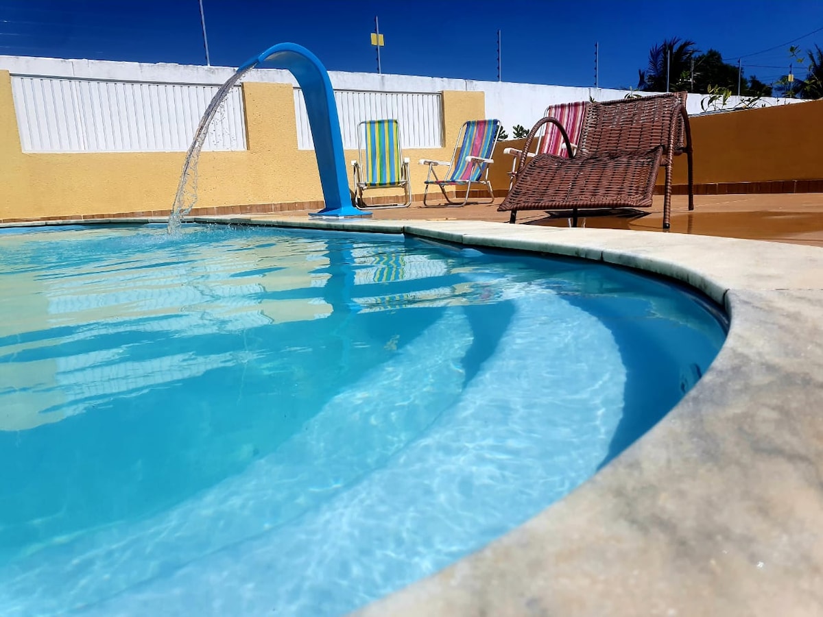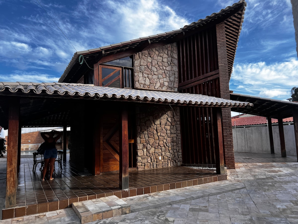 A casa foi projetada com muito carinho, pensando na comodidade de todos da família, optamos por todos os quartos serem suítes. Apesar da casa ser relativamente pequena todos os cômodos são bem divididos. Dispõem de três suítes, todas com ar-condicionado e chuveiro elétrico. A varanda é um ótimo local para apreciar a paisagem na rede. A cozinha americana toda equipada e integrada com a sala de jantar e sala de estar. A casa dispõe de um lavabo. E o chuveirão no terraço é ótimo para refrescar.