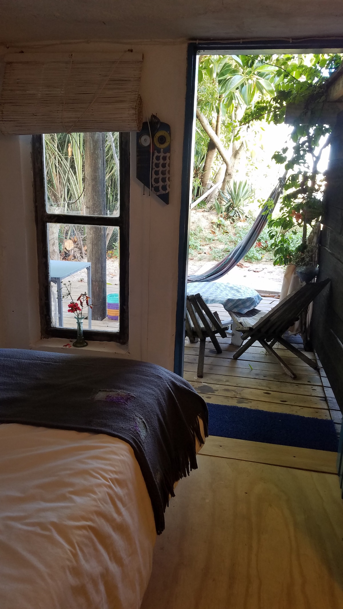 Encantadora casita de los Duendes , en la aldea permacultural de El Jardín Volador. cabaña de madera con entrada independiente para 6 personas, con dos camas dobles y dos camas simples. Con baño seco, ducha solar y ducha a gas de acceso en el Jardin , cocina con gas, heladera y electricidad. agua riquísima de perforación. Lugares hechos y pensados a la medida de quien quiera disfrutar sencillamente! Amplio jardin con vistas al campo y el atardecer. todo a 100m del mar y lo mismo del centro