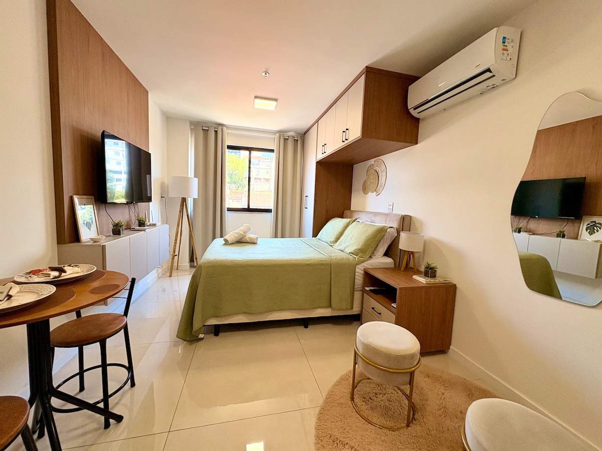 Studio completo e aconchegante em Volta Redonda. Aproveite este estúdio moderno com linda vista, em uma área silenciosa, a poucos minutos do Hospital Unimed e do shopping Park Sul. Equipado com ar condicionado, Wi-Fi, cozinha completa, cama de casal e sofá-cama, o espaço acomoda até 3 pessoas com todo conforto. Ideal para quem busca praticidade e uma localização estratégica, seja a trabalho ou lazer.