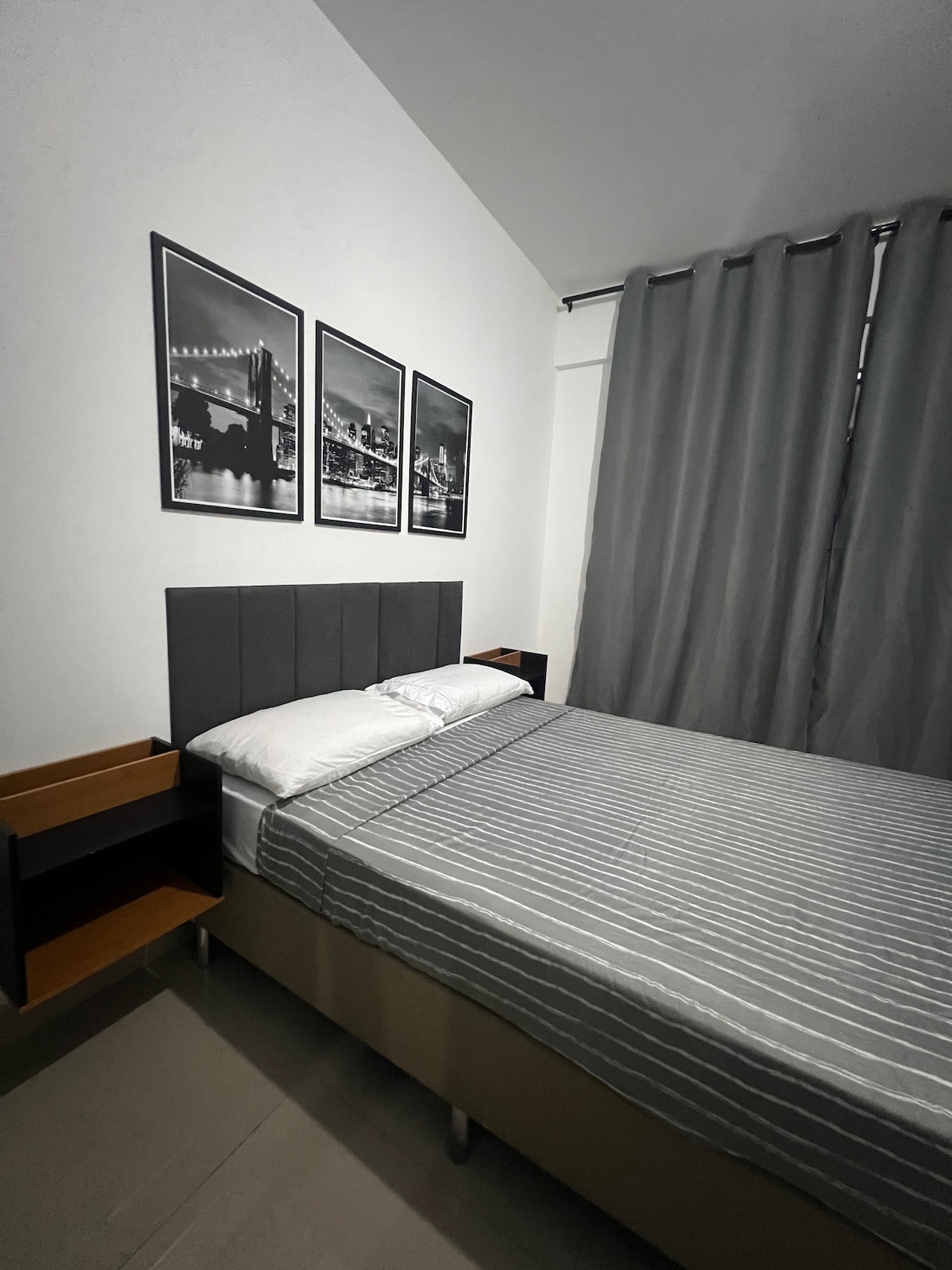 Preparei para você hóspede um lugar que se traduz em conforto e aconchego, com uma decoração bastante acolhedora. Os dois ambientes são climatizados e possui TV por assinatura. A cozinha americana é equipada com todos eletrodomésticos. O Condomínio em si, já oferece lazer gratuitamente, nele você pode desfrutar de uma ampla área, contendo piscina aquecida para os dias frios, sauna, duas jacuzzis, academia, salão de jogos, quadra polisportiva e parquinho. Estacionamento e wi fi gratuito.