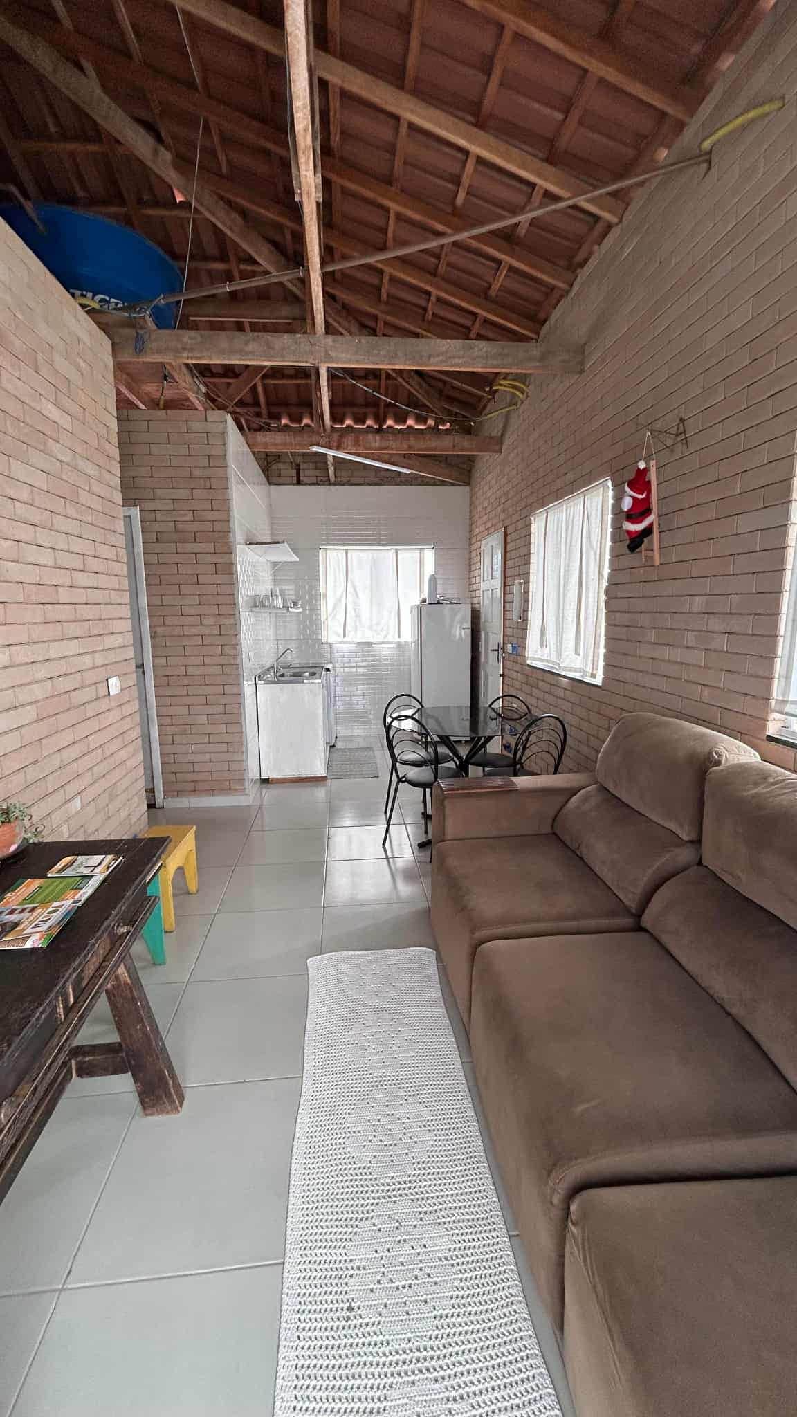 Relaxe neste espaço calmo e cheio de estilo, com tudo organizado e pensado para que você possa aproveitar ao máximo seu tempo de lazer e descanso pertinho da praia, em Barra do Saí. O estúdio é um espaço único que integra quarto, sala e cozinha. Além disso, a ampla porta-janela dá acesso a uma espaçosa varanda com churrasqueira, mesa, cadeiras e rede para descanso. Parte desse espaço é coberto, o que permite ser usado mesmo em dias chuvosos; parte é aberto para que se possa desfrutar do sol.