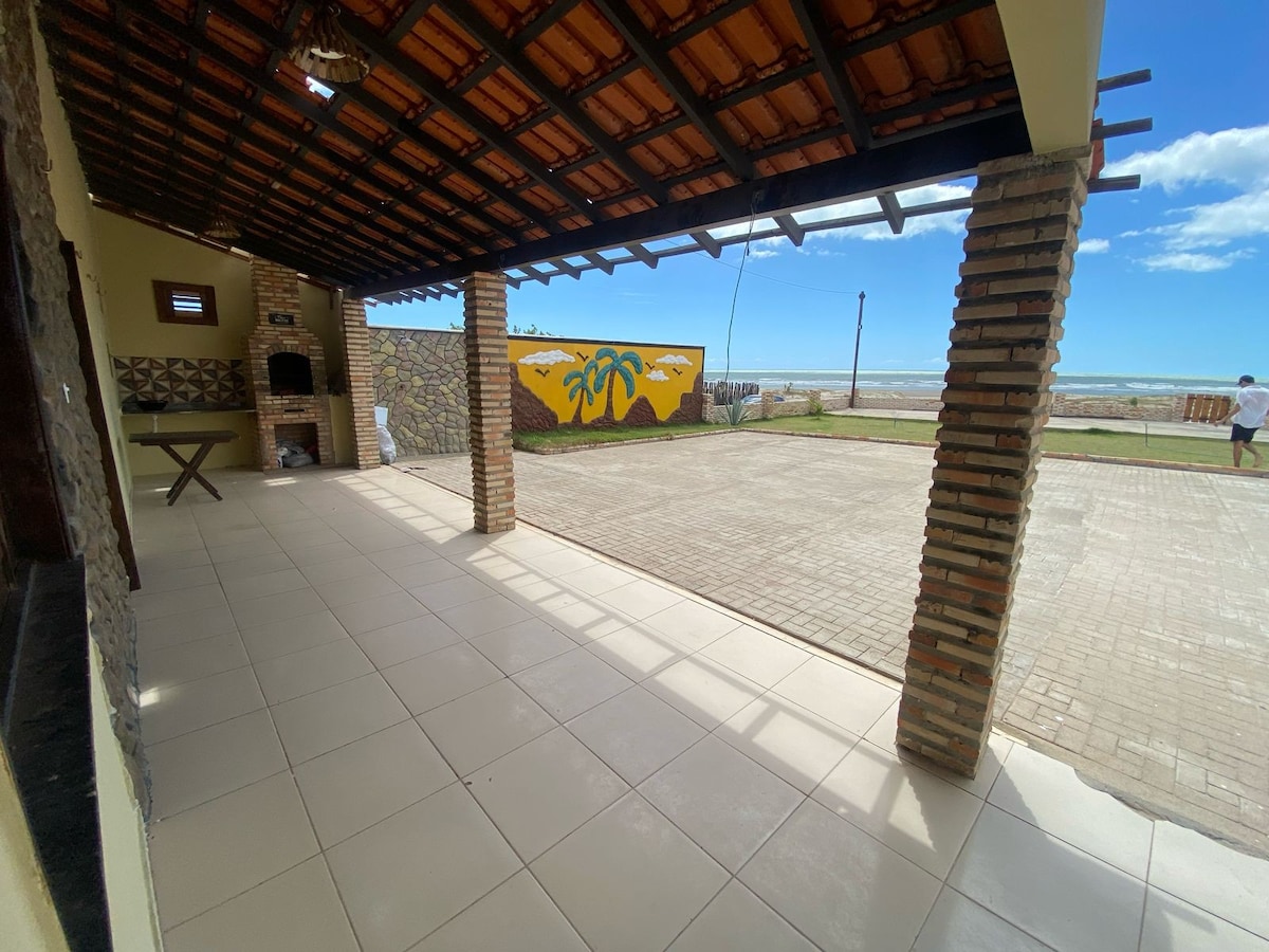 Excelente casa de praia nova à beira-mar com muito espaço e conforto para famílias que buscam tranquilidade. Com 05(cinco) suítes amplas e climatizadas, cozinha completa e muito espaço para convivência com vista para o mar. Próxima às barracas de praia e com acesso direto à praia . Possui churrasqueira e poço próprio. Quartos e banheiros com acessibilidade para pessoas com deficiência.