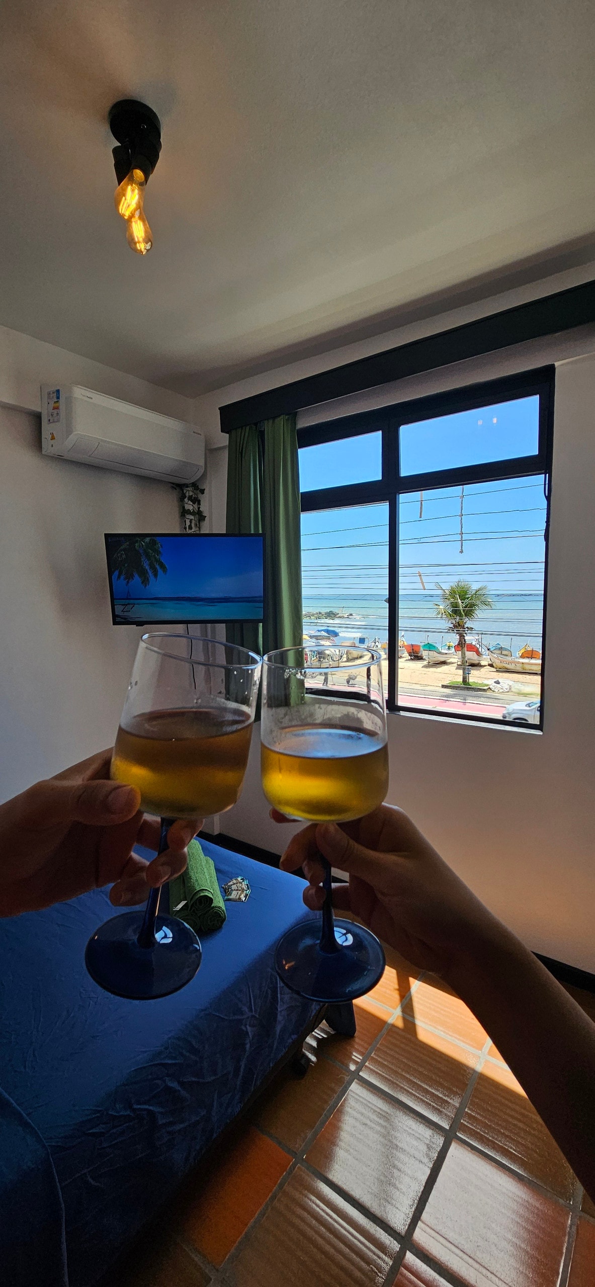 Linda vista para o mar da praia central. Aprecie uma mágica noite ao som das ondas do mar. Perto de bares, mercados, lojas, restaurantes, ao lado da praça central e do Cristo! Completo, aconchegante e charmoso! Com secador de cabelo, ferro de passar, fogão, geladeira, microondas, TV (Disney/Star/Globoplay), louças, liquidificador, sanduicheira, cafeteira, Forno, chaleira e panela elétrica, air fryer, lençóis/cobertas. *Não fornecemos toalhas de banho. Wi-Fi e estacionamento (50m do AP)
