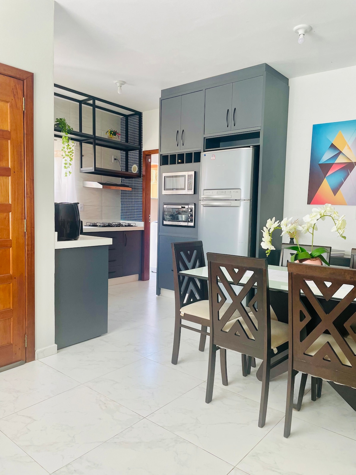 Relaxe neste espaço de bom gosto, conforto e tranquilidade. * Sala c/vista Mar e por do sol * Cozinha equipada p/a preparação de um jantar de chef, como p/um lanche rápido. Louças, taças, panelas, airfreyer * Banheiros c/ducha a gás * Suíte: Acorde olhando o mar, cama Queen, colchão king koll, muito confortável * Quarto/Escrit. Bancada p/trabalho c/ vista mar e Cama casal box * Smart TV c/assinatura de canais * Internet * Ar Condicionado em todos os cômodos Um luxo