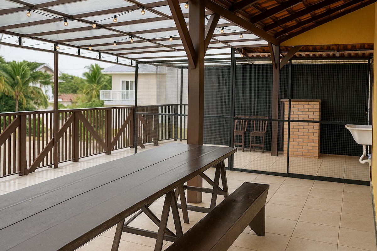 Casa completa, ideal para famílias, com sala ampla, varanda arejada e espaço pet seguro. Suíte confortável com cama de casal + beliche, ar-condicionado, cozinha equipada e ambiente aconchegante para descansar. Localizada no Itacolomi, um minuto da praia, com fácil acesso ao comércio local, BR-101 e Beto Carrero. Perfeita para dias tranquilos no litoral.