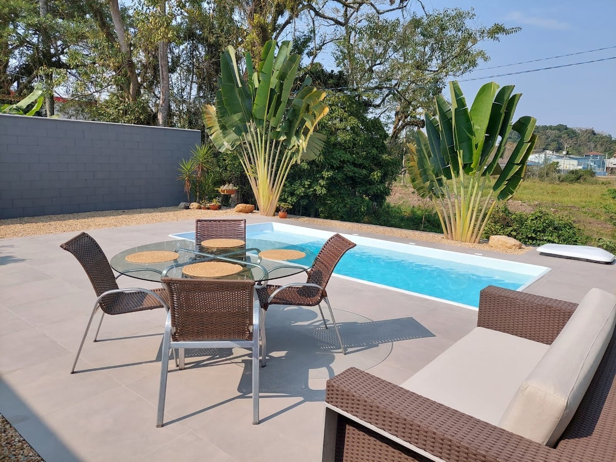 Casa de alvenaria, única no terreno, totalmente cercada com portão eletrônico, apenas 750 metros da praia. Área de lazer incrível, com vista para a Lareira, Piscina e Jardim. - 20 km do parque BETO CARRERO WORLD - 27 km do Aeroporto Navegantes - 40 km de Balneário Camboriú Supermercado, padaria, açougue, bares, restaurantes, farmácia em um raio de +/- 300 metros. - ESTACÃO DE RECARGA PARA VEÍCULOS ELÉTRICOS há 700 metros.