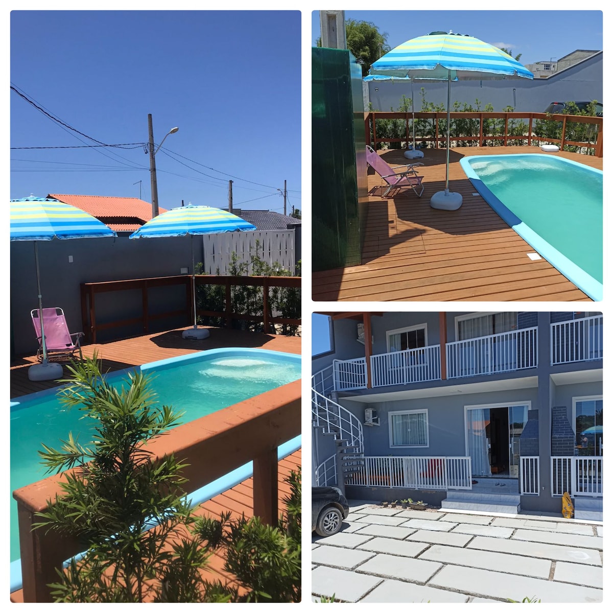 Loft para 4 pessoas * AR CONDICIONADO * PISCINA EXCLUSIVA DO HOSPEDE * Cozinha Completa * Smart 50P * 2 varandas * Estacione sem custo área coberta * Churrasqueira * Fogão a lenha * Duas camas de casal. ( 1 no mezanino e outra na Sala ) * fogueira externa com varal de luz * PETS: NÃO COBRAMOS TAXA SE ELE NÃO FOR NA PISCINA! * lavanderia. Campinho de vôlei 2 bikes ( Avise antes) * 3 km da praia de Itajuba * 1 km da BR 101 -BR que beira litoral catarinense
