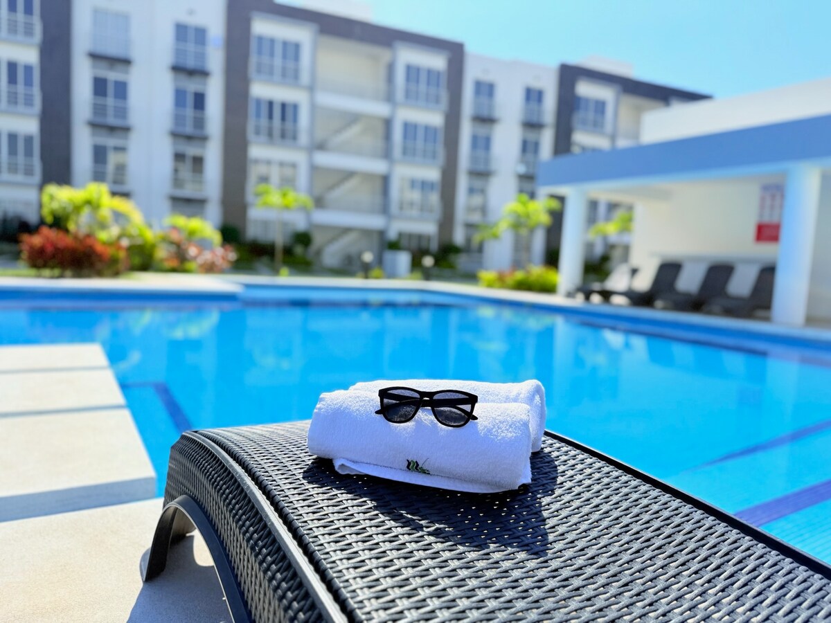 Relájate con toda tu familia en este alojamiento donde la tranquilidad se respira a solo unos pasos de refrescarte a pasar un día único y especial . A solo 8 min del club de playa sobre la carretera barra vieja, 25 min puerto de Márquez, 20 min del aeropuerto y variedad de restaurantes. En el club de playa cuentas con accesos al gimnasio , sauna ,spa,área infantil, albercas ,playa privada regaderas,etc ( con costo adicional spa y alimentos , no se permite acceso con mascotas )