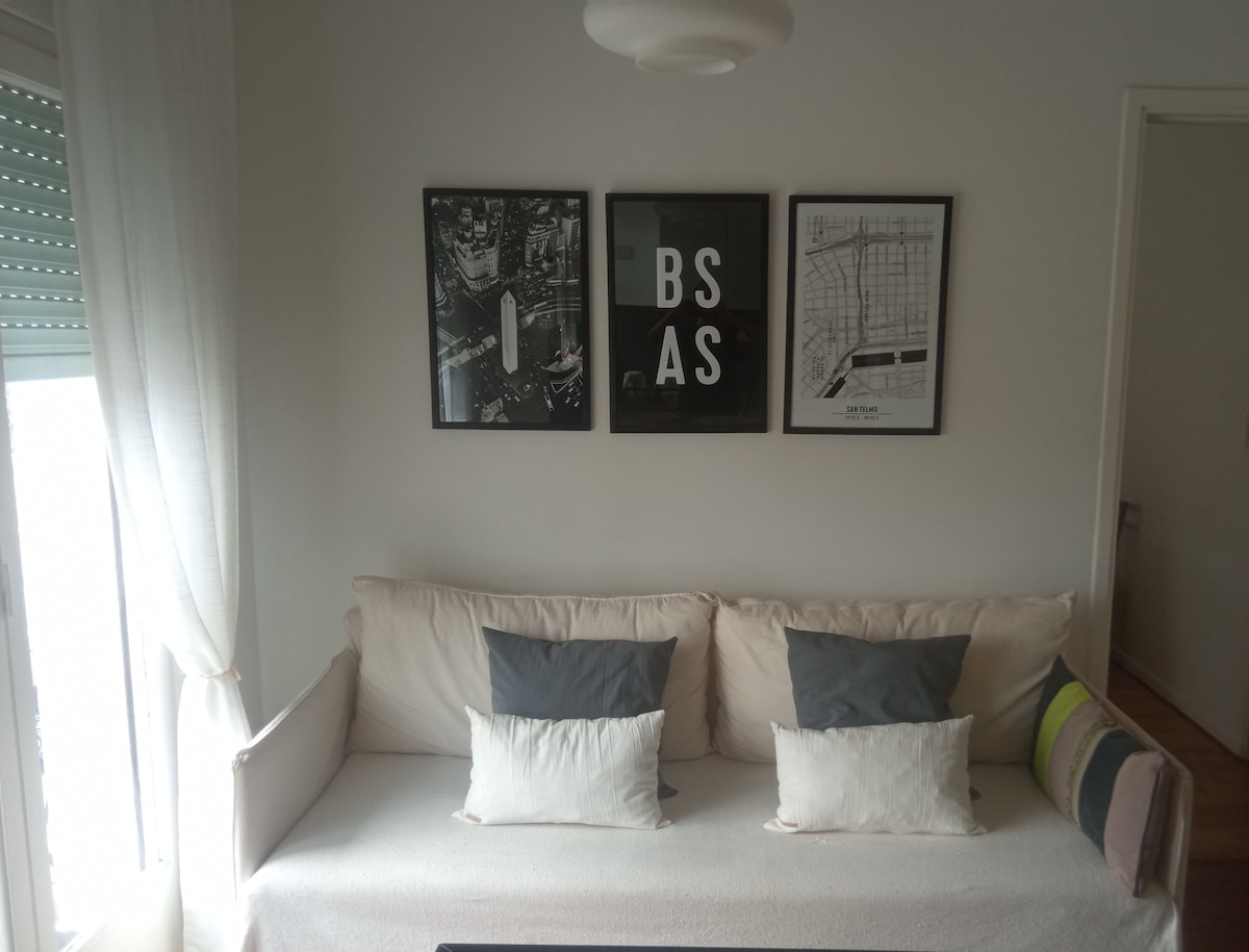 ★ Great location in San Telmo ★ - Few steps to Calle Defensa (street market) - 5min walk to Casa Rosada and Plaza de Mayo - 5min walk to San Telmo Market - 5min walk to Puerto Madero - Plenty of bus stops and subway stations nearby. Very bright and very quiet apartment. No street noise. Charming Historic building Master br: KING size bed 2nd. br: twin beds A/C in main bedroom and living room Amazing bathtub for two Fully equipped kitchen LGBT-friendly ★★ Click on CONTACT HOST ★★