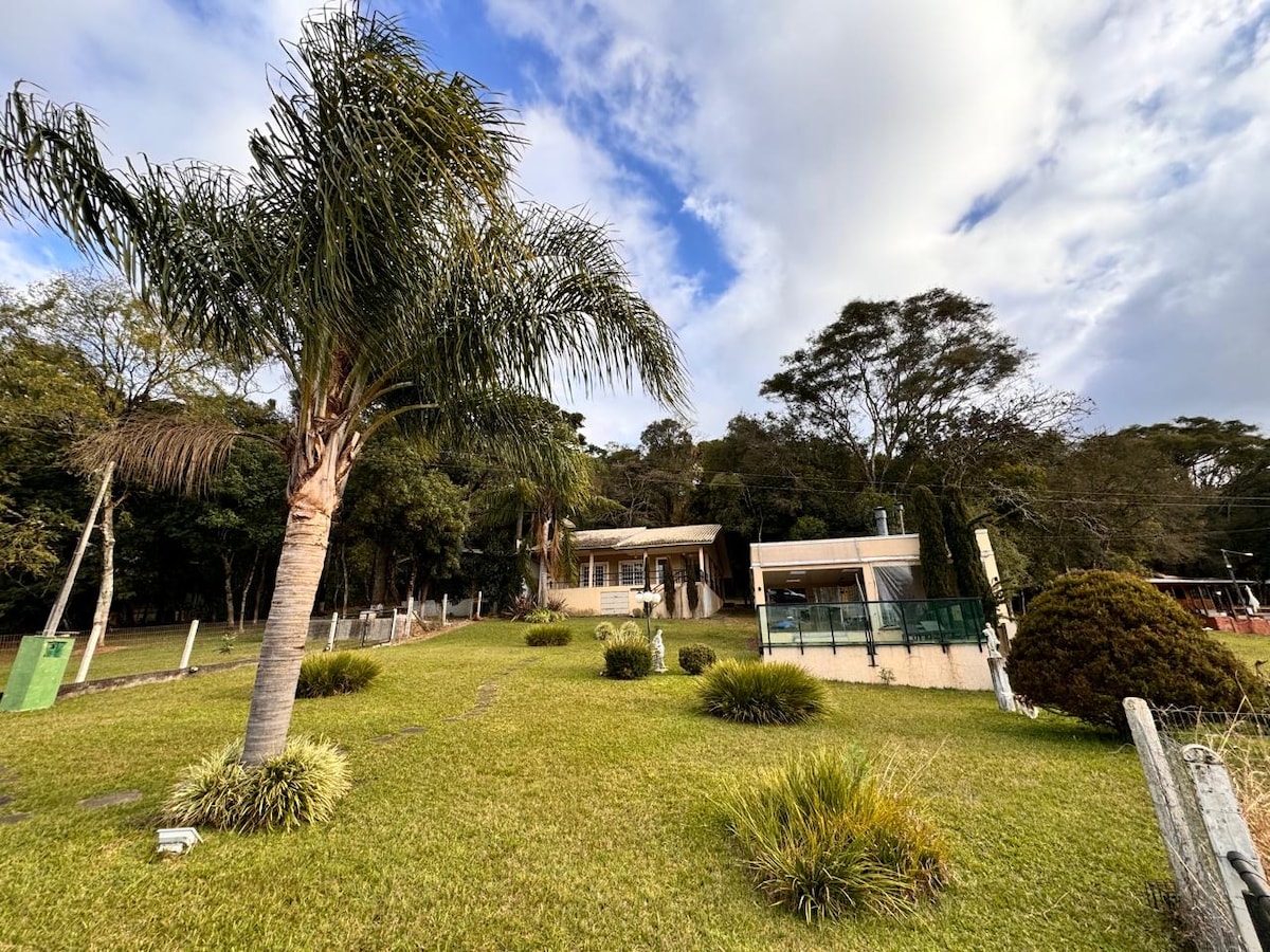 Relaxe com toda a família nesta acomodação tranquila. Junto a barragem de Ernestina. A casa oferece acomodação climatizada nos 4 quartos, amplo jardim, quiosque com infraestrutura completa, piscina aquecida, parquinho infantil, trapiche, porto para lancha ou jetski.