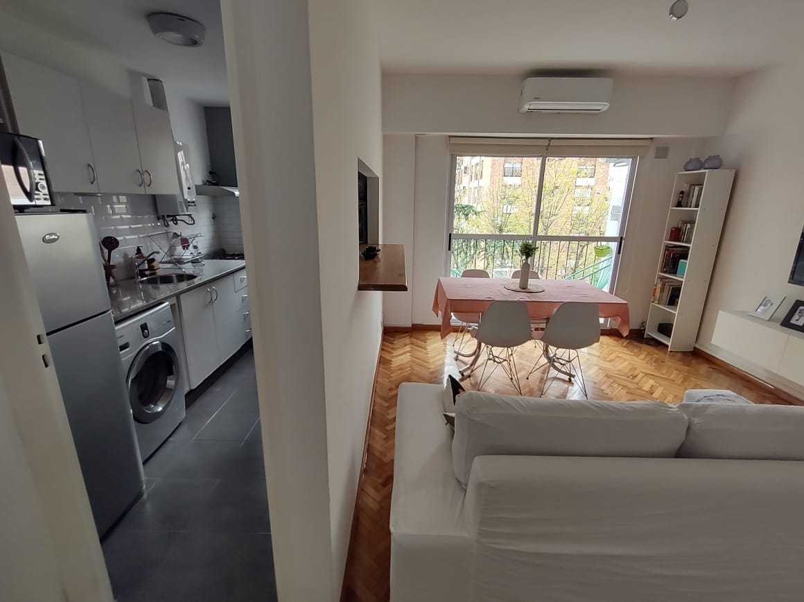 Excelente departamento de 46 m2, moderno muy cómodo y luminoso, ubicado en el corazón de Belgrano, a 100 metros de Av. Cabildo, del SUBTE "D" y METROBUS. Cuenta con balcón a la calle y ha sido decorado con mobiliario y equipamiento de alta gama. Servicios: aire acondicionado frío/calor, Smart TV de 43¨ televisión por cable HD y WI FI. La cocina totalmente equipada con heladera, microondas, pava eléctrica, cafetera Nespresso, licuadora y tostadora. Se ofrece también plancha y secador de pelo.