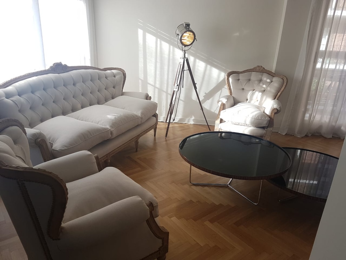Premium apartment, modern, very comfortable and bright, located in the heart of Belgrano, a few meters from Av. del Libertador and Av. Cabildo, the SUBWAY "D" and METROBUS. It has a balcony and pool, decorated with high-end furniture and equipment. Services: hot/cold air conditioner, 50¨ and 32” Smart TVs, HD cable TV, Netflix and WI FI. Fully equipped kitchen with refrigerator, washer machine, electric oven, gas stove, electric kettle and Nespresso coffee machine.