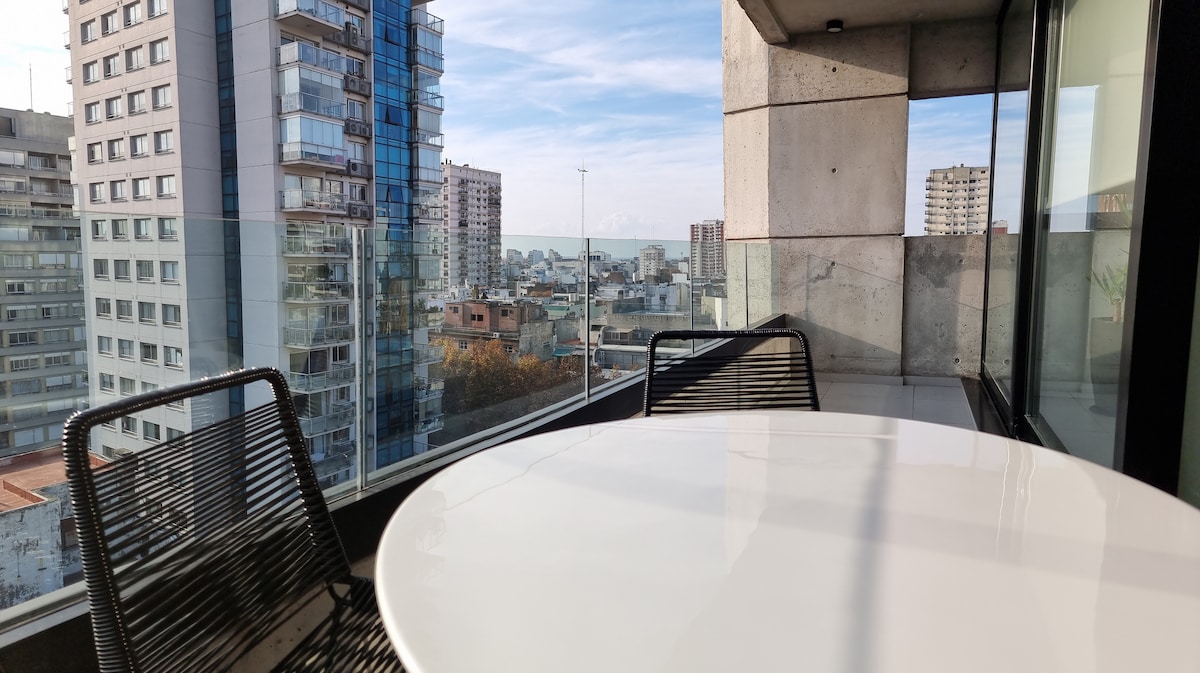 A Buenos Aires secret gem. Enjoy amazing panoramic views of Palermos parks, city skyline and the sunrise over Rio de la Plata river. Located in Libertador avenue, in one of the most sophisticated neighbourhoods, surrounded with many trendy cafes & bars. This penthouse studio sits at the top of a traditional and historical building, standing out with distinguished high-end design details and functionality. It's been awarded in prestigious design magazines. Live a unique Buenos Aires.