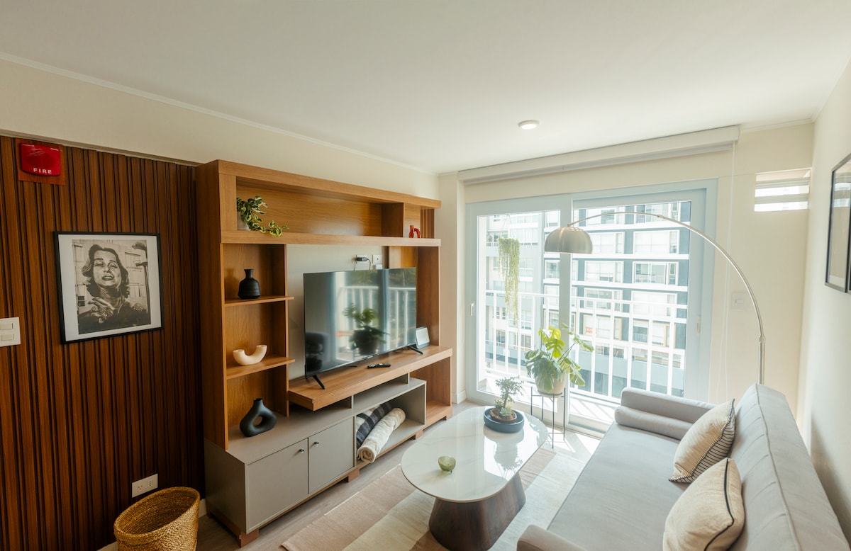 W&Y "Welcome Home" ✅Exclusive and modern apartment in the best area of Barranco. ✅Very close to Miraflores, Mall Larco Mar, just down the beach. ✅On the 1st floor it has a grocery and drinks store 🛒, cafeteria ☕, ice cream parlor 🍨 and is surrounded by restaurants 🍽 and A1 bars 🍻, galleries, museums, 100% nightlife and charm ✅Pool 👙 + Jacuzzi ♨ (22nd floor) with panoramic views of the sea and the city. ✅Concierge 👨✈️+ security 👮♂️24/7
