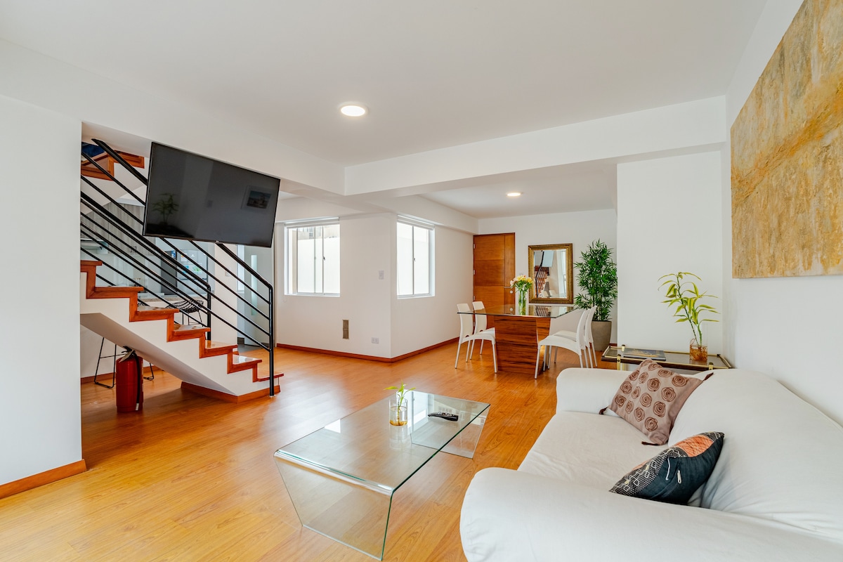 Live Lima from the 20th floor with stunning views! 🛏️ KING bed 📺 65" TV 🛋️ Comfy sofa 🍳 Fully equipped kitchen 🏊 Pool, 🔥 BBQ, and 🍸 Lounge Bar (subject to availability) 🚗 Parking for USD 8/night (subject to availability) 🧳 Store luggage before check-in or after check-out 📍 Prime location between Miraflores, San Isidro, and Surquillo 🌟 With a 4.96 rating and Superhost status, I offer you a comfortable and safe stay. 📅 Book now and enjoy Lima from the top, with style and comfort!