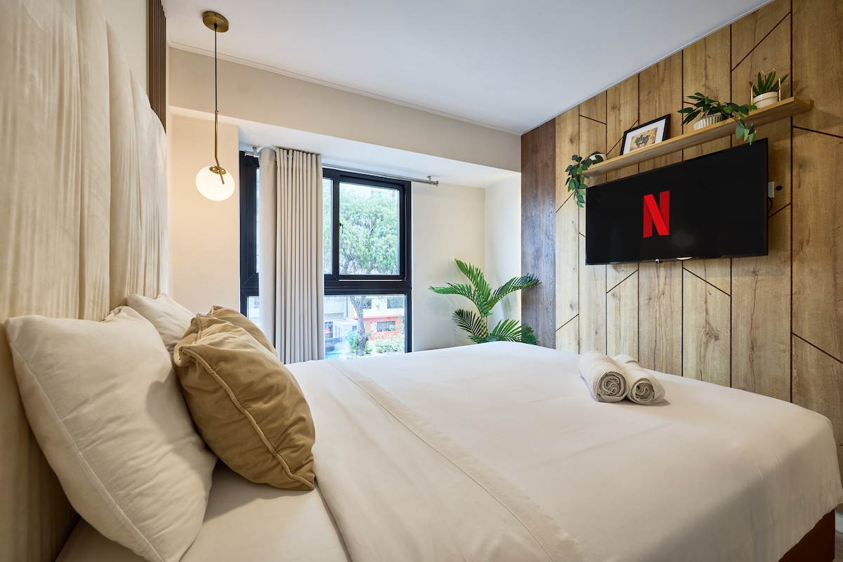 LA PISCINA NO ESTÁ EN FUNCIONAMIENTO HASTA PREVIO AVISO. Este lujoso apartamento ofrece una estancia cómoda con una cocina totalmente equipada. Su decoración combina minimalismo y estilo cálido para crear un ambiente elegante y moderno. También tiene áreas comunes como piscina, gimnasio, parrilla, y sala de billar. Desde el rooftop, puedes disfrutar de impresionantes puestas de sol con vistas al mar. Rodeado de bares, restaurantes y tiendas de primera clase, en un barrio tranquilo y seguro.