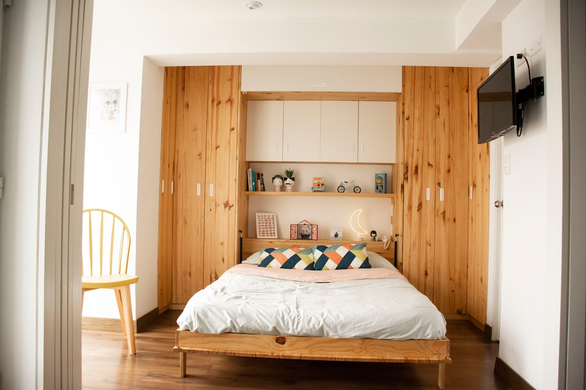 Enjoy the privacy of this cozy apartment with independent access in a 5-story building in Barranco. Surrounded by lush trees, traditional houses, parks, museums, and cultural centers. At the local market, you can enjoy cheeses, hams, fruits, and typical food at very affordable prices. Just three blocks away, the Malecón invites you to enjoy peaceful walks, sea breeze, and memorable sunsets. Ideal for those who wish to stay in a district rich in culture and history.