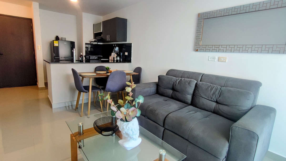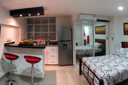 Spectacular new studio apartment, fully equipped and furnished with all the comforts for business and / or tourism. It has an excellent location, close and with easy access to: shopping centers (Viva, Buenavista), restaurants, corporate area, banks, supermarkets and more. The tower has a hotel-type lobby, free parking, 24-hour security, elevators. Gym, jacuzzi, playground and co-working soon.