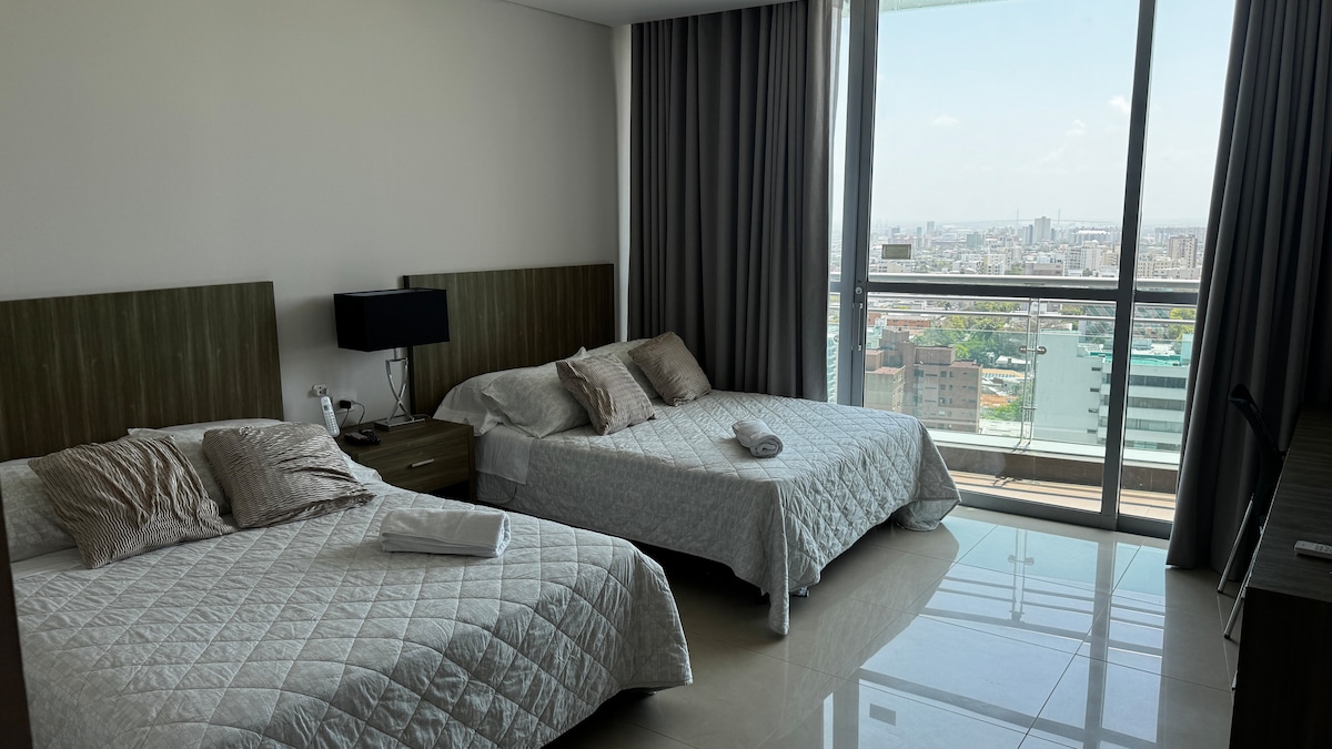 Enjoy this beautiful and comfortable luxury suite ideal for families and friends. Located to the north in a very quiet residential neighborhood with beautiful parks around it and close to the best shopping centers (BUENAVISTA, VIVA), price mart, restaurants, hotel zone (Marriot, GHL), Via 40 (CARNIVAL EVENTS) clinics (Porto blue, Iberoamerica), sports fields (racquets, Patinodromo), universities and schools. Easy access to the Malecón, Puerto Colombia Beaches (pier 1888) and Salgar.
