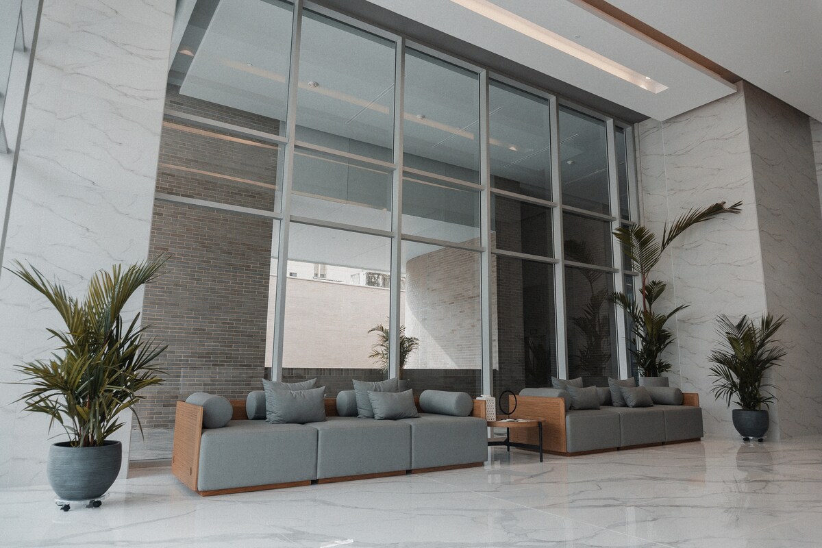 Strategic location in Riomar, ideal for business travelers, executives, and tourists seeking a safe and comfortable stay in Barranquilla. This modern studio apartment offers all the essentials in one space. Just minutes away you’ll find three major shopping malls with top brands and restaurants. A 5-minute walk leads to a lively plaza with dining options, bars, and nightlife.