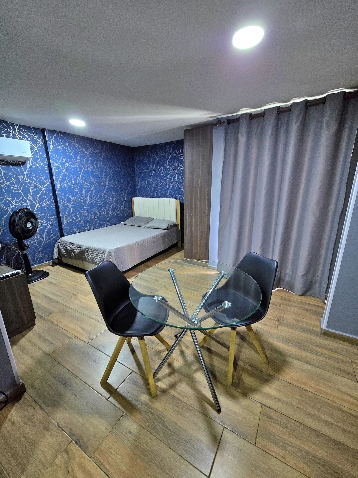 Espectacular Suite en exclusivo sector norte de Barranquilla, amoblado y dotado con todo lo necesario para un buen descanso, ideal para parejas, viajes de negocios. Podrás disfrutar gratis de Jacuzzi, Gym, Coworking y salón de juegos. Ubicado sobre la principal vía de Barranquilla, con fácil desplazamiento a cualquier punto de la ciudad. Situado en el principal eje corporativo, hotelero y comercial, a solo 5 minutos de centros comerciales, entidades bancarias, flotas de transporte y notarías