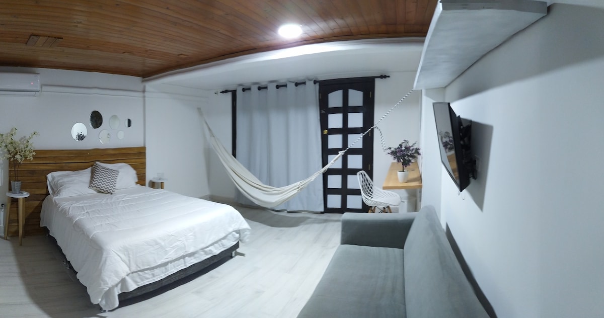 Feel relax in this exclusive and peaceful getaway. Every detail will make you feel unique and special, as it is designed with all the passion, love and care so that you have a dazzling experience and can disconnect from the world. You will have everything you need, double bed + single trundle bed below, sofa bed, hammock where you can relax and watch TV/movies on Netflix, AC, mini-fridge, microwave, Wi-Fi/Ethernet cable, desk and chair, or go out to the terrace to take bath of sun or moon!