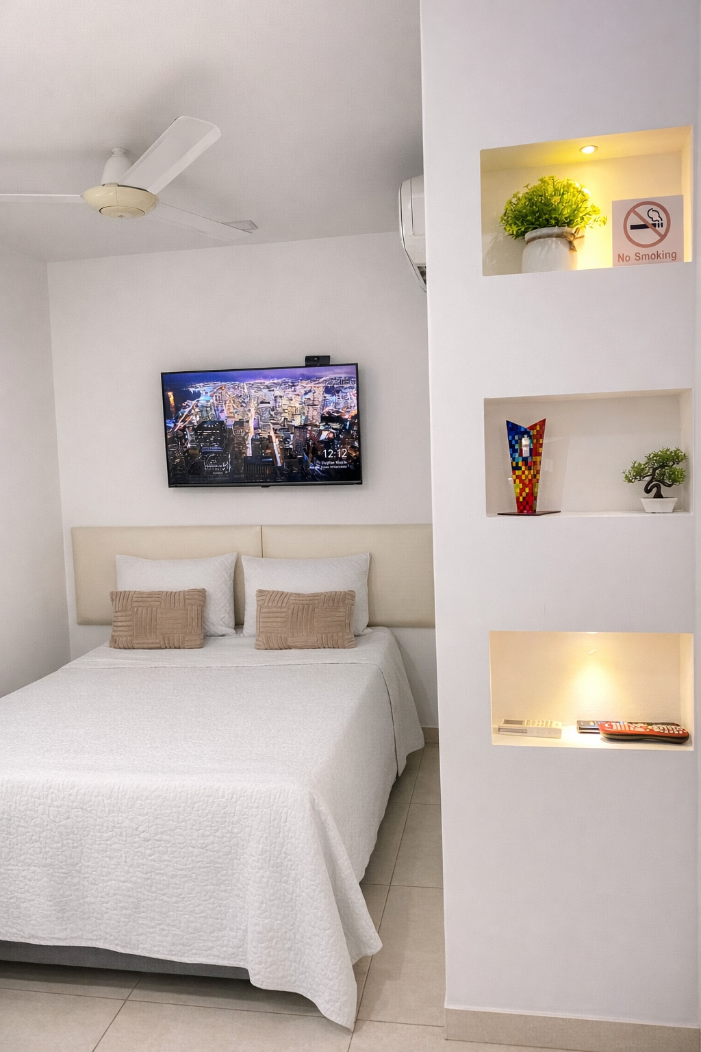 hospedaje boutique hermoso aparta estudio pequeño con baño, cocina privada, estufa, microondas, nevera minibar, licuadora dotado utensilios necesarios para buena estadía. Dentro habitación cama doble 2 personas aire acondicionado smart TV, wifi gratis edificio con área coworking, Gym estamos al norte barranquilla, tranquilo seguro, cerca parques para actividad física, cerca centros comerciales, restaurantes, farmacias y más distracción! interior no vista es interior , impecable, autónomo,