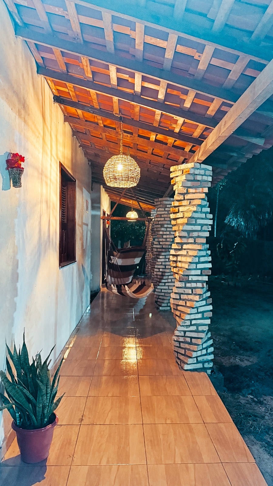 Enjoy the coziness of Casa Carnaúba's ecological suite! A beautiful natural adobe construction, with natural thermal insulation and surrounded by all the nature of this paradise that is Atins. We are located on the Main Street of the Village, just minutes from Atins beach. The room is airy and has a private balcony with a hammock, minibar, wall fan, semi-open bathroom and space to eat and work.