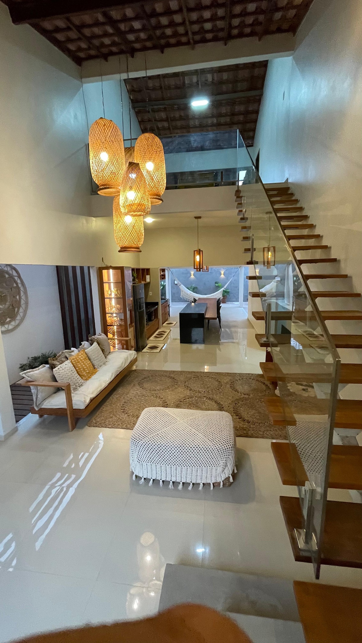 Descubra a Casa Biana, um refúgio em Barreirinhas, dentro do melhor condomínio fechado com acesso ao rio Preguiça. São 4 suítes , 6 banheiros, cozinha completa, piscina, churrasqueira, TV em todos ambientes e sala climatizada. Oferece o cenário perfeito para momentos felizes em família ou com amigos. Inclui berço portátil e cadeira de alimentação. Próxima a uma praia privativa e a 7 min do centro, nossa casa é a base ideal para explorar os encantos locais e os Lençóis Maranhenses. Viva a magia!