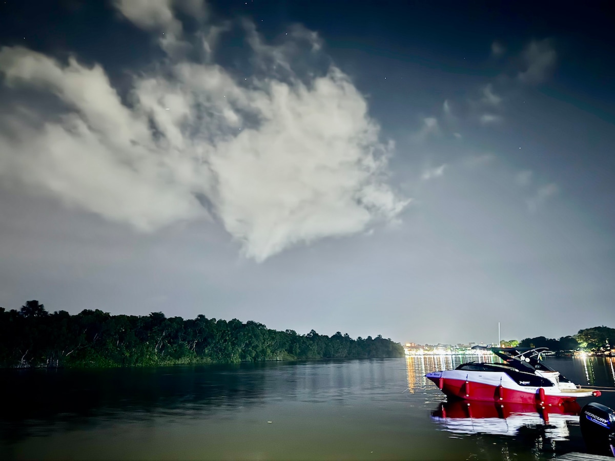 Lindo triplex para 8 pessoas, localizado às margens o Rio Preguiças e bem próximo ao centro de Barreirinhas. Com localização privilegiada, estamos a menos de 1km da Av Beira Rio, onde se encontram os principais atrativos gastronômicos e culturais da cidade. Somos o lugar ideal para quem procura conforto, uma vista espetacular para o Rio Preguiças e com direito a pôr do sol direto de nossas varandas.