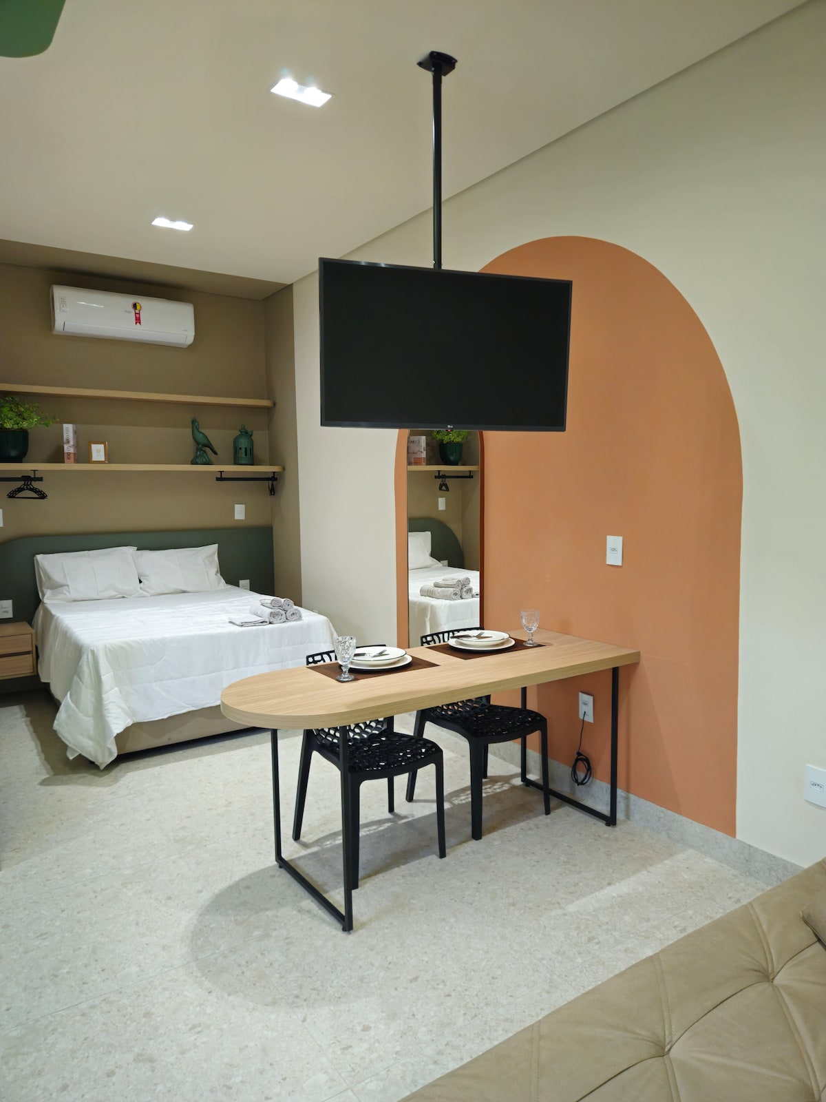 Nosso ambiente foi planejado para ser uma extensão da sua casa, proporcionando conforto e uma boa experiência em Barretos, não somente uma hospedagem. O loft está localizado no bairro Ibirapuera, próximo ao North Shopping. * 2 km do Hospital de Amor - 5 min de carro. * 13 km do Parque do Peão - 15 min de carro Vaga para um carro em garagem fechada. Ar condicionado em todos os ambientes (sala, cozinha e quarto). Excepcionalmente durante a festa do peão não forneceremos toalhas de banho.